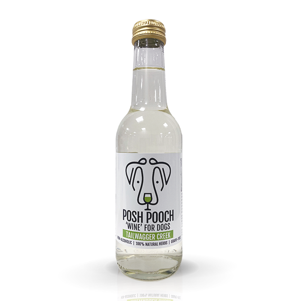 The bag includes 2 bottles of Posh Pooch 'wine' for dogs. We loved the idea of having a healthy dog 'wine' for our flurry friends, especially at Christmas time, alongside our normal wines that we sell.